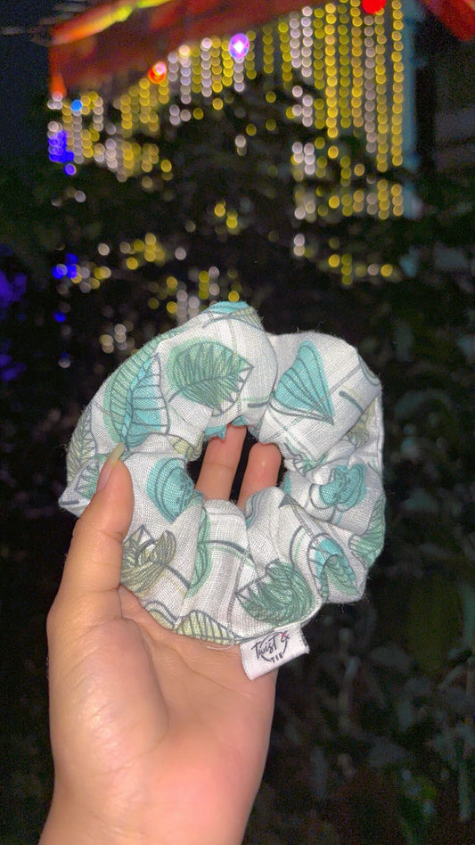 Botanical Leaf Cotton Scrunchie – Breathable Green & White Hair Tie by Twist & Tie