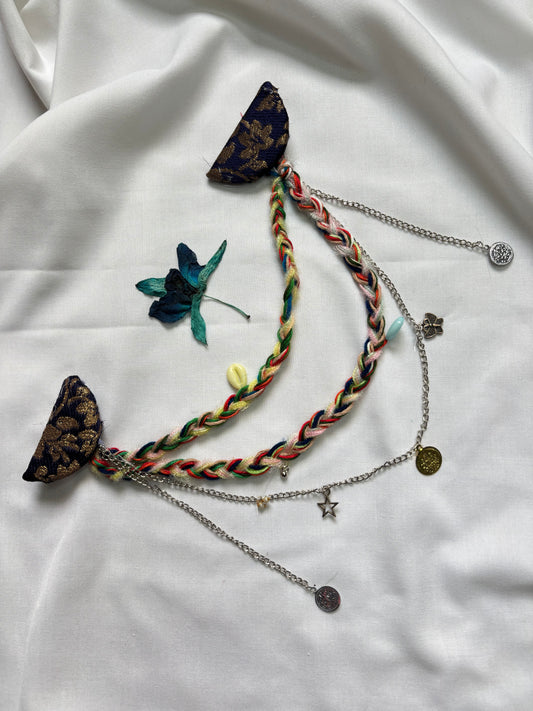Multicolor Braided Rubber Hair Tie with Beads and Charms
